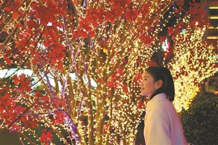 火樹銀花不夜天,流光溢彩呈繽紛?!敖衲甑囊咕罢嫫涟?!”旺姆阿姨和登增叔叔晚飯后帶著孫女來(lái)到將軍橋散步,在自己的家鄉(xiāng)欣賞到如此美妙的景色,登增叔叔忍不住夸贊。此時(shí),將軍橋道路兩旁的綠化帶在彩燈的映襯下輪廓畢現(xiàn),與玻璃棧道上的光影交相輝映,城市美景盡在其中。