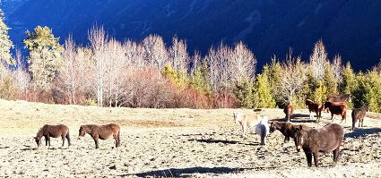 洛克所經(jīng)過的地方就是三巖龍鄉(xiāng)的猛董,這是一處鮮為人知的隱世天堂。猛董有“五絕”,即“山、湖、谷、寨、寺”,山是被當(dāng)?shù)厝诵欧顬樯裆降柠湹刎暩拢湹?,藏語為珍珠),湖是神山腳下的麥地措(珍珠湖),谷是雅礱江谷地的藍月山谷,寨是猛董“后花園”的普米寨子,寺是修建于明清時期的猛董古寺。
