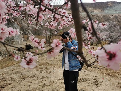 每年此刻,花笑綻枝頭,與朱紅色藏房相映成趣。此時,小伙坐于桃樹下拉起悠悠二胡,而姑娘們則輕揚水袖跳起巴塘弦子,輕歌曼舞、落英繽紛、美不勝收。