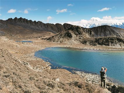 雪山、海子是高原風(fēng)光的重要組成,讓人迷醉的風(fēng)景里少不了它們的身影。在大山脊看貢嘎的徒步線路中,沿著大山脊還有一條較為小眾的徒步線路,是由海子串起的,同樣整個(gè)線路都可以看見貢嘎主峰。