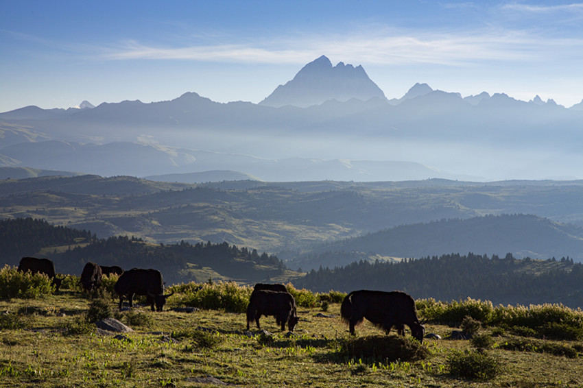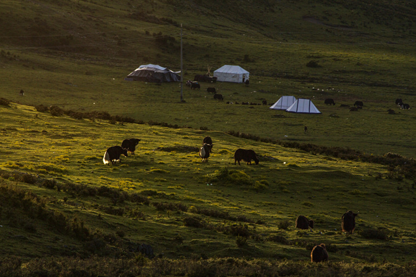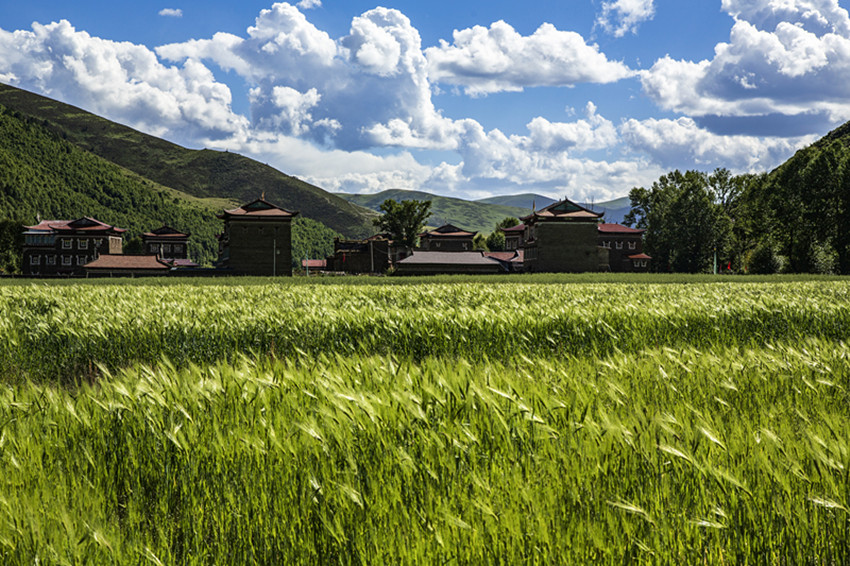 然后行走在山水之間,擁抱大自然,尋找屬于自己的“詩和遠方”。油綠的青稞、小麥,散發(fā)出濃郁的田園風味;天邊群山起伏,磅礴的氣勢瞬間感覺人在自然面前實在太渺??;帳篷點綴著開滿野花的牧場,牦牛哞鳴,一片生機,細細體會牧民“逐水草而居”的生存智慧......