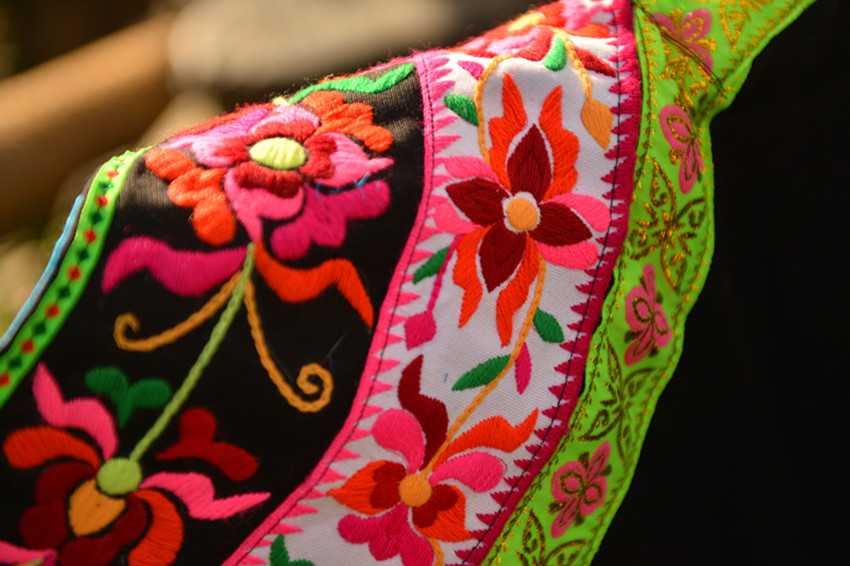 今年76歲的周光芬老人,是魁多鎮(zhèn)第五代刺繡制作技藝非遺傳承人。居住在九龍縣魁多鎮(zhèn)里伍村,老人身著傳統(tǒng)的客家服飾,在自家的院壩里編織布料,溫暖的陽(yáng)光照著老人。