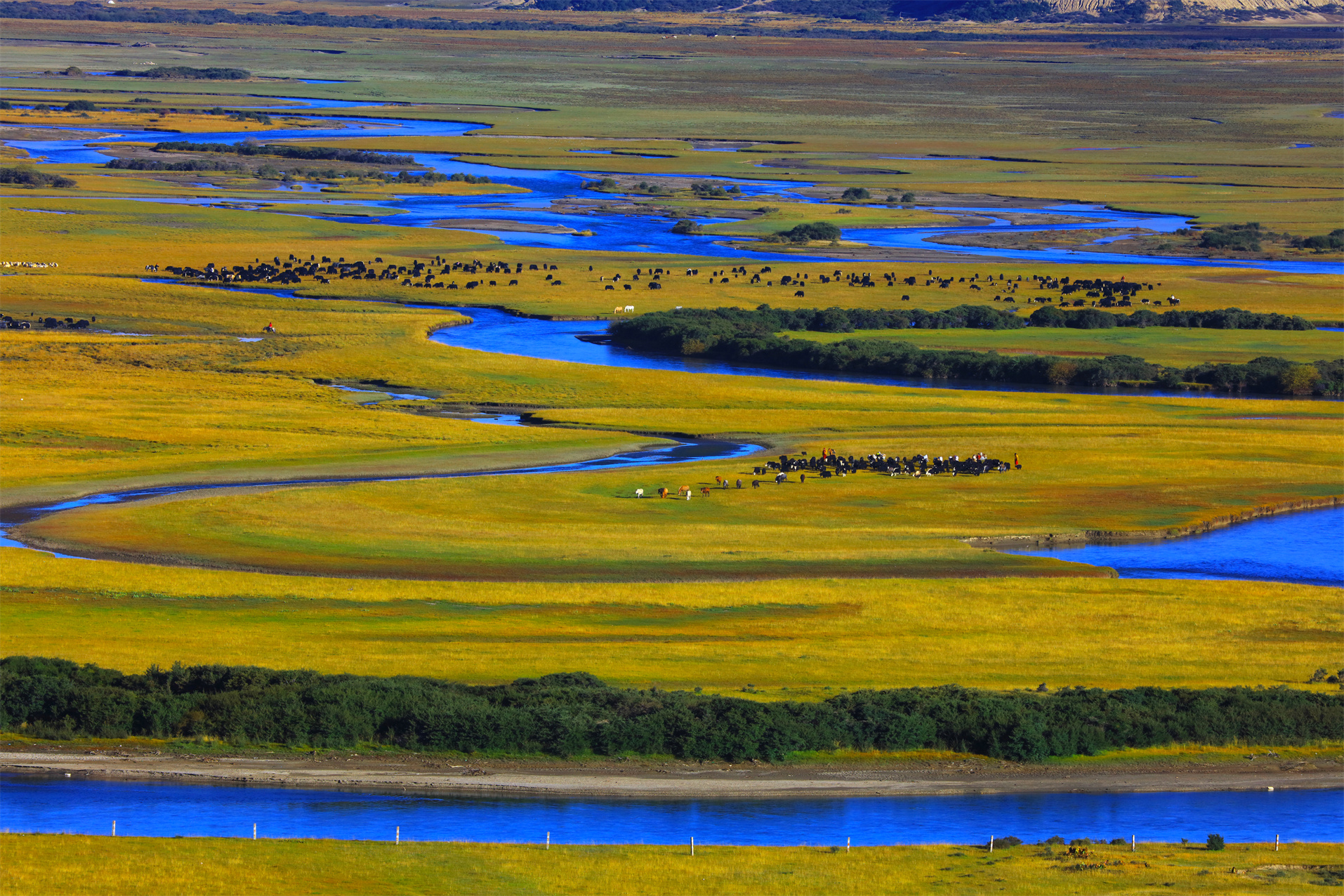 走進草原,會被滿目青青的草地吸引,被五彩野花所誘惑,發(fā)源于海子山的無量河從草原中部穿過 ,十數(shù)條大小支流在草原上流趟、注入干流,河兩岸分布著無數(shù)沼澤濕地。