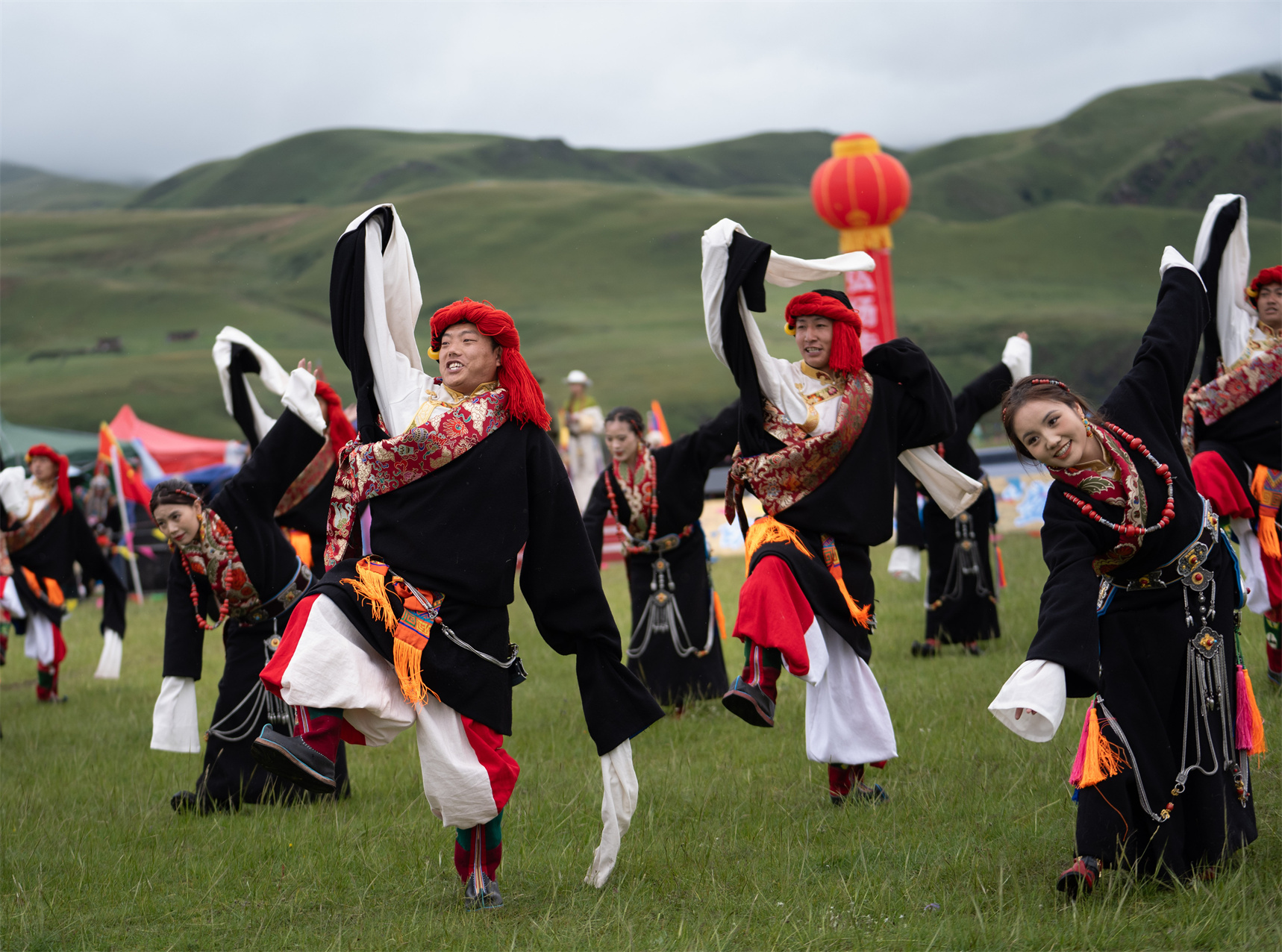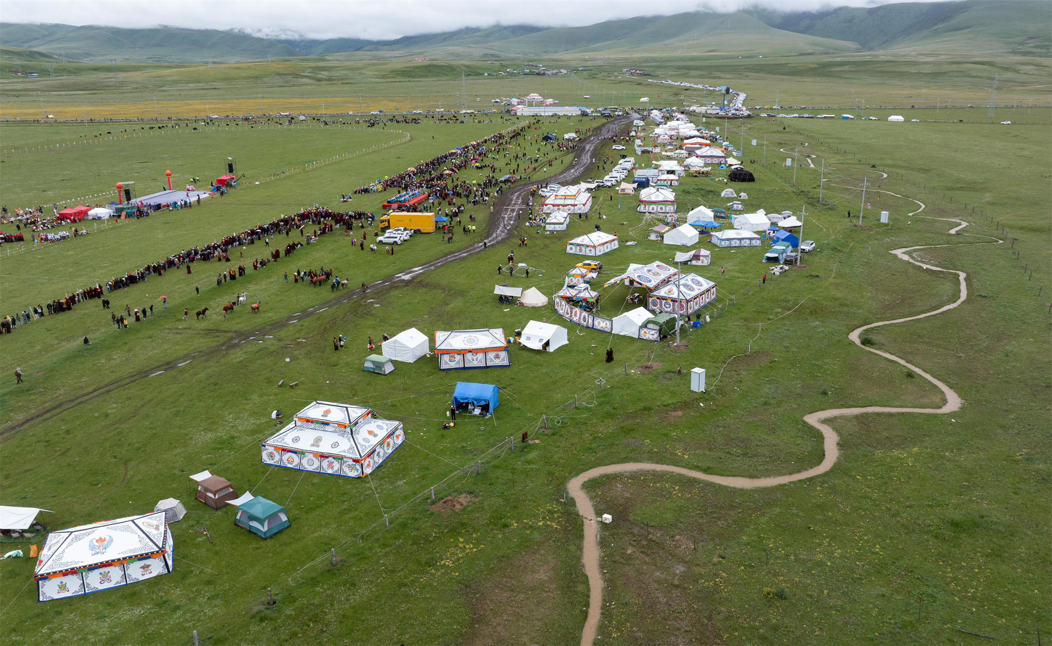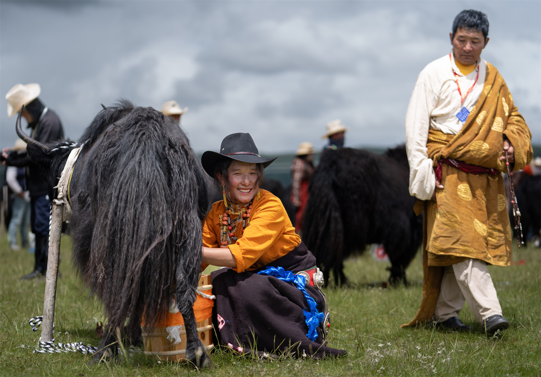7月27日,四川省甘孜藏族自治州白玉縣第二屆“盛德白玉·草原最?!编l(xiāng)村民俗文化活動在阿察鎮(zhèn)日通草原啟幕。文藝匯演、牦牛選美、擠奶比賽、賽馬等活動在接下來兩天里將輪番上演,吸引當(dāng)?shù)啬撩窈捅姸嘤慰颓皝碛^賞。