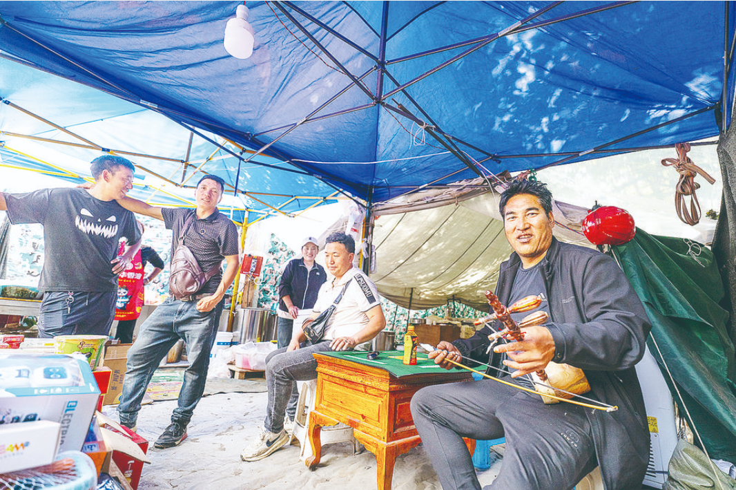 夏邛鎮(zhèn)村民益西一大早就在龍王塘忙碌著,洗菜、切菜、搟面......“又是一年‘央勒節(jié)’,今年還是和往年一樣,一邊過(guò)‘央勒節(jié)’,一邊賣(mài)冒面?!彼麑⑺{(lán)色帳篷簡(jiǎn)單劃分成休息區(qū)、餐食區(qū)、廚房區(qū)3個(gè)區(qū)域,“上午準(zhǔn)備好食材,下午和大家一起迎‘央勒’?!?/p>