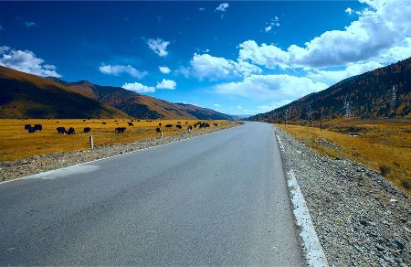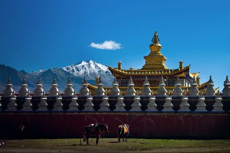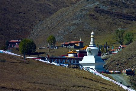 “塔公”,藏語意為“菩薩喜歡的地方”。相傳文成公主進藏時,途經(jīng)此地,隨身攜帶的釋迦牟尼佛像忽然開口,示意愿留在此地。眾人立即就地按照佛像原貌復(fù)制一尊留下。從此,高原上有了被稱為“小大昭寺”的塔公寺。塔公草原也因此而得名。自康定沿川藏線西行,翻越折多山,過新都橋后北行不多時便是塔公了。沿線的河流、草原、森林、山體、寺廟、藏寨構(gòu)成了濃郁的甘藏風(fēng)情。高聳的雅拉雪山、起伏的草原、成群的牛羊和草原上金碧輝煌的“木雅經(jīng)塔”讓人留連忘返。