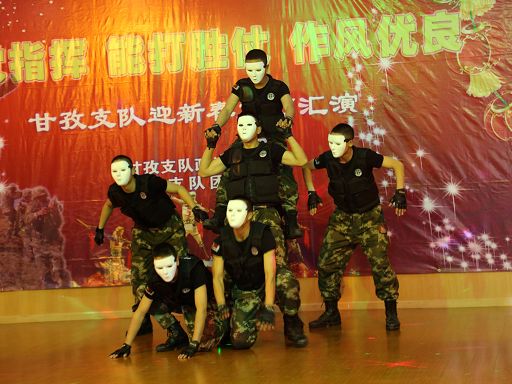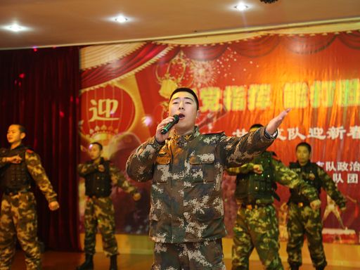 整臺匯演以“我們行進(jìn)在強(qiáng)軍路上”為主題,共分“喜迎新年,官兵情懷,祝福祖國”三個篇章,晚會融歌舞、小品、相聲、雙簧等表演于一體,結(jié)構(gòu)緊湊、熱情奔放、氣勢恢弘,營造出了昂揚振奮、拼搏進(jìn)取的濃厚氛圍,充分展示了支隊官兵朝氣蓬勃的青春氣息和扎根高原、建功警營的豪情壯志。晚會在器樂合奏《鑼鼓喧天迎新春》拉開帷幕,融入歡慶腰鼓的喜慶元素,和著歡快的節(jié)奏,盡顯支隊特色文化隊的藝術(shù)魅力。歌舞表演《當(dāng)兵就是那么帥》刻畫了支隊官兵時刻準(zhǔn)備著上一線、打頭陣的戰(zhàn)斗激情;雙簧《快樂的武警官兵》展示了官兵熱愛警營生活、活潑可愛的一面;歌舞《迷彩假面舞》演繹了支隊官兵扎根高原,忠誠使命做奉獻(xiàn)的壯志豪情;《三句半》詮釋了支隊官兵牢記強(qiáng)軍目標(biāo),投身強(qiáng)軍實踐,勇挑重?fù)?dān),沖鋒在前,報國為民的高尚情懷;詼諧夸張的手法以小品《歌倆好》、啞劇《新兵訓(xùn)練》“兵演兵、兵寫兵”,表達(dá)官兵團(tuán)結(jié)一心,刻苦訓(xùn)練的精神風(fēng)貌,博得了現(xiàn)場觀眾的陣陣掌聲,將晚會推向了一個又一個高潮。演出中,各基層中隊維穩(wěn)駐訓(xùn)分隊以團(tuán)拜形式向全支隊官兵送上了新春的祝福。晚會在舞蹈表演《軍之魂》中落下帷幕。