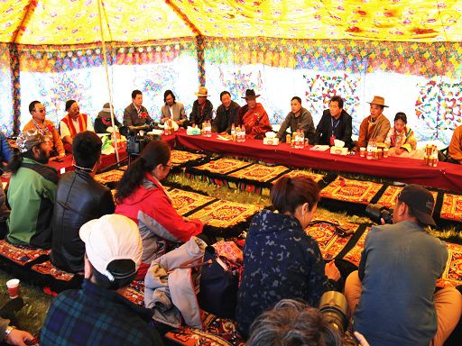 來自美國、蒙古、北京、甘肅、青海等地的43位格薩爾文化學(xué)術(shù)專家、說唱藝人參加了紅原和色達(dá)的活動(dòng)。此次學(xué)術(shù)考察紅原和色達(dá)的活動(dòng)是2015年全國“格薩爾故里行”“四川省兩州(甘孜州色達(dá)縣、阿壩州紅原縣)一地(成都市)”年度重要活動(dòng)組成部分。在紅原活動(dòng)現(xiàn)場,進(jìn)行了開幕式、“靈韻紅原·多彩馬背”主題文藝匯演和格薩爾山水傳說實(shí)地考察研討三項(xiàng)活動(dòng)。我州色達(dá)縣舉行了包括“色達(dá)格薩爾文化藝術(shù)中心落成典禮暨2015格薩爾故里行——草原詩韻活動(dòng)”、“參觀格薩爾文化藝術(shù)中心”、“2015格薩爾故里行——草原詩韻專場演出”、“格薩爾文化專題研討會(huì)”、“觀賞色達(dá)格薩爾傳統(tǒng)藏劇目”等在內(nèi)的系列活動(dòng)。
