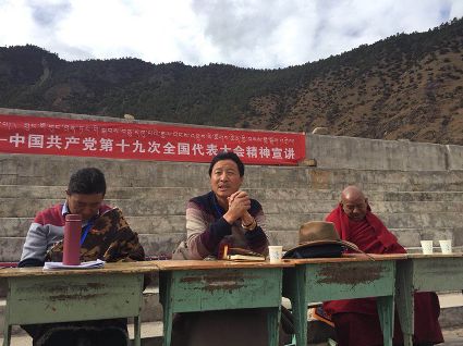 “群眾最關心民生和從嚴治黨的問題,我們用直白樸實的語言,用農(nóng)牧民群眾易于接受的方式進行宣講,相信對很多老百姓來說會有一定的效果,起碼能對十九大精神有個基本了解,對未來的生活有著新期待?!弊?/span>2013年就開始參加州委宣講的其美貢布有著自己的宣講風格。