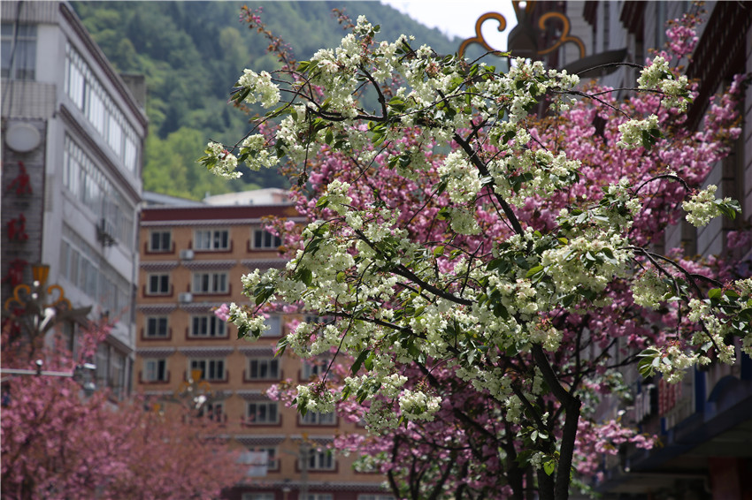 當(dāng)春天遇見(jiàn)最美的櫻花時(shí),驚艷了整個(gè)康定。櫻花與身邊人都將成為春日里的浪漫風(fēng)景。櫻花之美,美在氣勢(shì),櫻花紛飛,夢(mèng)幻唯美。每年4月中旬,康定城北門的櫻花綻放后,人們像是約好了一樣聚集到這里,共赴這一場(chǎng)甜美盛宴。這一路繁花似錦,人們穿過(guò)枝椏花正盛的櫻花林,穿過(guò)粉色海洋,徑直奔向一個(gè)浪漫的童話,一路櫻花飄散,一路粉光燦爛。櫻花絢麗繽紛、陸續(xù)綻放,若恰逢一陣春風(fēng)經(jīng)過(guò),櫻花瓣隨風(fēng)舞動(dòng),猶如紛落的雪花,空氣中浮動(dòng)著櫻花特有的淡淡香氣,令人不禁懷疑自己置身夢(mèng)境?!翱刀ǖ拇禾靵?lái)得要晚一些,綻放的櫻花,滿街的花草,折多河畔楊柳依依,康定的春天無(wú)比驚艷,醉了游人?!敝芟壬贿吪恼眨贿吀袊@,他在康定生活了40多年,20年前的康定,可以說(shuō)找不到像樣的花草樹(shù)木,進(jìn)入新時(shí)代,康定城市變美了,城市綠化走在了前面,城市的美譽(yù)度舒適度不斷提升??刀ㄖ海荷珴M園,姹紫嫣紅,風(fēng)光旖旎。
