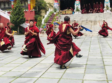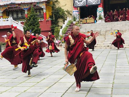 為紀(jì)念釋迦牟尼佛的誕辰(浴佛)日,康定群眾每年農(nóng)歷四月八日都要舉行隆重盛大的紀(jì)念活動(dòng),稱“四月八”轉(zhuǎn)山會(huì),南無寺的跳神活動(dòng)就是其中之一。