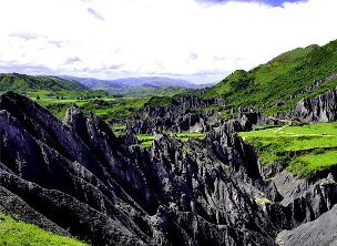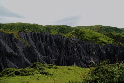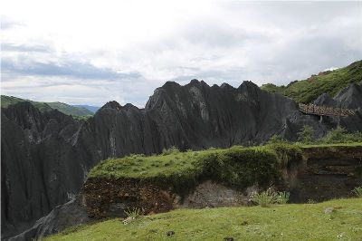 墨石公園,是中國唯一高原石林景觀,被譽(yù)為“中國最美景觀大道第八美 ”。受第四紀(jì)新構(gòu)造運(yùn)動影響,隨著青藏高原的隆起,鮮水河斷裂帶中的巖石受到擠壓、剪切、破碎、糜化,形成糜棱巖石林。石林含丐鹽,受空氣濕度影響,干燥季節(jié)呈淺灰色、淺藍(lán)色,濕潤季節(jié)呈滄黑色,因此又稱之為變色石林。