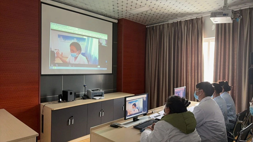 “要及時關(guān)注患者的免疫指標有沒有異常,同時跟進其他科室會診情況 ”通過大屏幕,四川省人民醫(yī)院心血管內(nèi)科專家黃慧仔細查看詢問患者病例近況,并詢問患者洛絨次真情況,隨后給出治療意見。