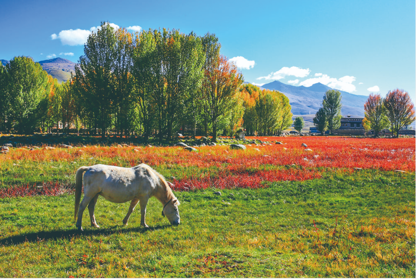 三月的四川稻城縣香格里拉鎮(zhèn),春風(fēng)與陽(yáng)光攜手而至,高原的寒意悄然退去,草長(zhǎng)鶯飛,綠葉在枝頭伸展,繁花在大地?fù)泶亍?/span>