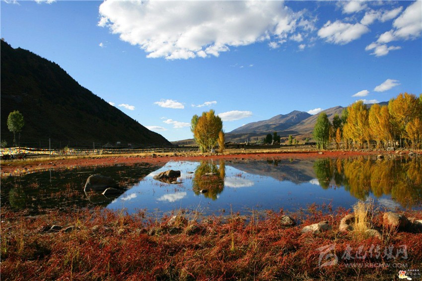 當(dāng)短暫的夏天過(guò)去之后,亞丁迎來(lái)了它最令人心醉和神秘的秋天,“秋葉與雪峰相擁,碧水共長(zhǎng)天一色”。一夜的秋風(fēng)吹過(guò),山體和大地都改變了模樣,整個(gè)亞丁變得厚重而深沉。雪山之下的森林由單一的綠色變成深綠與金黃相間。深綠的是不落葉的云杉和冷杉,金黃色的是四川紅杉的松針,山楊也是金黃色,但這種金黃是一種透明的金黃。各種鐵樺槭的顏色是艷麗的紅色,像火一樣。草地上的綠草也不再是綠草,而成了衰草,但這些枯草并不凄涼和蕭瑟,而是在風(fēng)中搖曳著最后的顏色,從容地接受冰雪的到來(lái),從容地等待著來(lái)年的再次勃發(fā)。