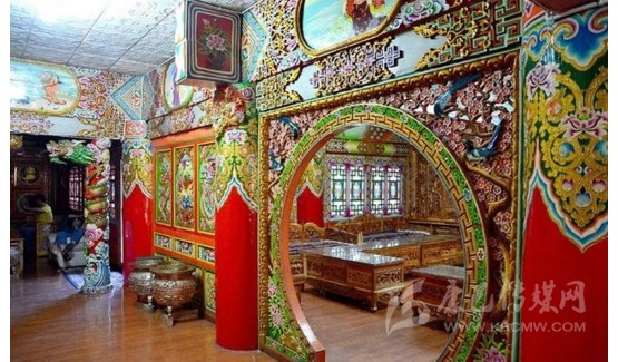道孚民居修建最麻煩的工序是它的內裝修。因為是技術活,親朋好友幫不上忙,而且時間長,花錢多。裝修的工匠根據主人的要求,先完成雕刻,再繪畫。一般來講,一棟中型的民居要用半年多的時間才能完成內部裝修。雕刻與繪畫,是道孚民居的精華所在。道孚民居以其獨特的風格譽滿藏區(qū),口碑遠及海外。