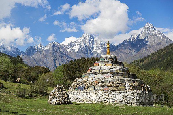 七色海邊有藏區(qū)的白塔以及無數(shù)的瑪尼堆,對藏民來說,這里是無比圣潔的地方,也是他們的朝圣之地。在七色海的四周圍繞著很多雪山,他們的海拔都在5000米以上,很多都是常年積雪不化,因此不論什么季節(jié)來木格措都能看到雪山的風(fēng)景。