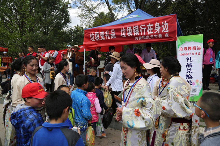 曬佛儀式之后是第三屆“梵音”音樂會。音樂會在由州歌舞團演繹的面具舞《祈福康定》中拉開序幕,13個表演節(jié)目中,既有透人心靈的梵音演唱和二胡演奏,又有激蕩人心的說唱表演和流行演唱,還有質(zhì)樸脫俗的原生態(tài)民歌演唱和群舞鍋莊,時尚和古樸、流行與傳統(tǒng)都在這里得到了集中展現(xiàn)。原生態(tài)歌曲《溜溜調(diào)》,原創(chuàng)歌曲《康定先生》《新編木雅鍋莊》等極具康定特色的節(jié)目更是將情歌故里的人之美、景之美、文化之美展現(xiàn)得淋漓盡致。將近90分鐘的表演高潮迭起、精彩紛呈,現(xiàn)場喝彩聲、歡呼聲此起彼伏,手機、單反、平板、航拍交相輝映,忙著錄視頻、拍照片、發(fā)微博、曬動態(tài)的人更是比比皆是在。除了精彩的表演,現(xiàn)場身著華麗盛裝的康巴美女也是一道靚麗的風景,引得無數(shù)中外游客爭相與之合影留戀。從四面八方趕來叫賣、推銷各種商品的店商和攤販也為此次活動增添了不少生氣。此外,康定團市委還特意在活動現(xiàn)場開展了“垃圾變禮品”活動,通過贈送禮品鼓勵大家清理垃圾,此次活動雖然人流巨大但場地衛(wèi)生異常良好。