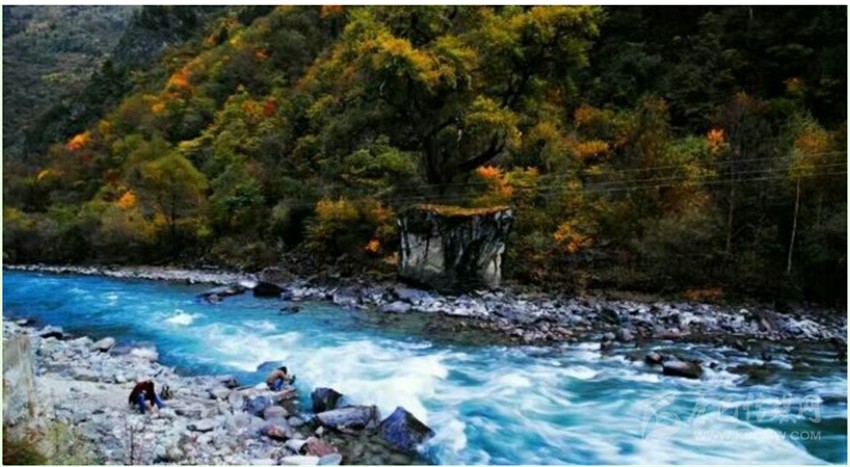 東谷河原名牦牛河,在丹巴縣五個主干水系中,它是最小的一條,兩岸多為峽谷地貌,僅在支溝匯合處出現(xiàn)有平壩草地。在陡峭高聳的河谷兩岸,針闊葉混交林呈現(xiàn)出深淺不同的綠色,既有青黛,墨綠,又有嫩綠,草青及四季輪番開花的不同品種的大小杜鵑。還不時有珍禽出沒。每當秋高氣爽的季節(jié),一團團,一簇簇的紅葉伴隨杜鵑花在林間綻放,伴以宛轉的啾啾鳥嗚;河水清澈明亮,時而奔騰而下,形成飛瀑,時而伴著叮咚之聲潺潺而過,這種美景何處能有?老革命家胡耀邦同志游覽后,對此青山綠水贊不絕口,并稱之為“天然盆景”!盆景藝術一向以“無聲的詩詞,立體的畫卷”來形容。牦牛谷景點正是一個有著巨大篇幅的詩詞,一個有著廣闊的立體畫卷。