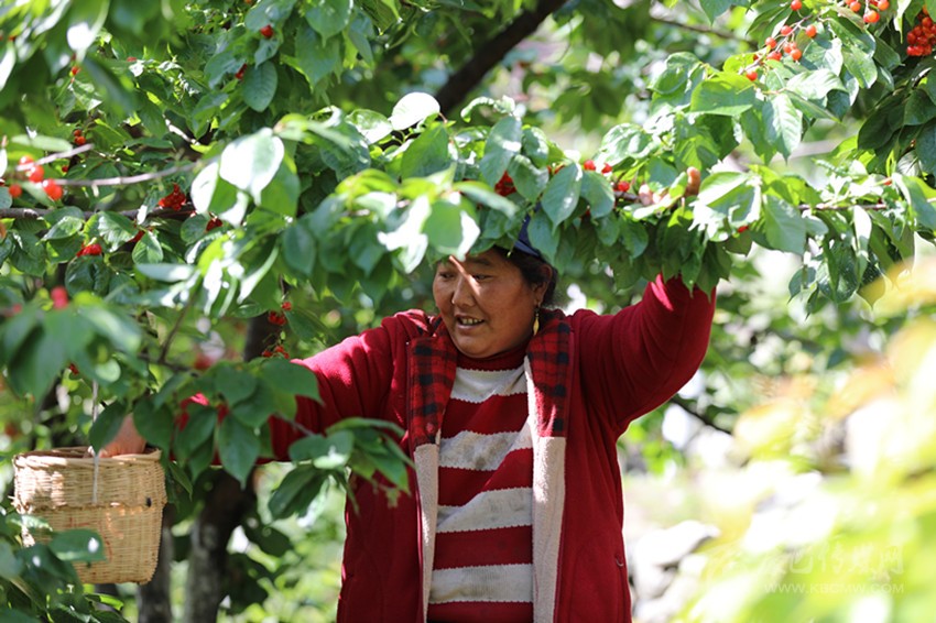 “樹上的恩桃兒隨便摘、敞開吃!”板板橋農(nóng)家樂老板鄧安美熱絡(luò)地招呼著客人,忙碌中掩飾不住內(nèi)心的喜悅?!斑@周末14個房間全部訂滿,午餐、晚餐也已經(jīng)訂了40桌?!睋?jù)了解,今年紅櫻桃節(jié)活動開始前一周,瀘定縣內(nèi)及紅櫻桃節(jié)舉辦地杵坭村周邊的酒店、民宿就已供不應(yīng)求。漫山遍野間,一串串已經(jīng)成熟的櫻桃在燦爛陽光的照耀下,紅艷欲滴;農(nóng)家樂里,樹下擠滿了三五成群的游客,有的邊摘邊吃,有的喝茶聊天,好不悠然自怡。
