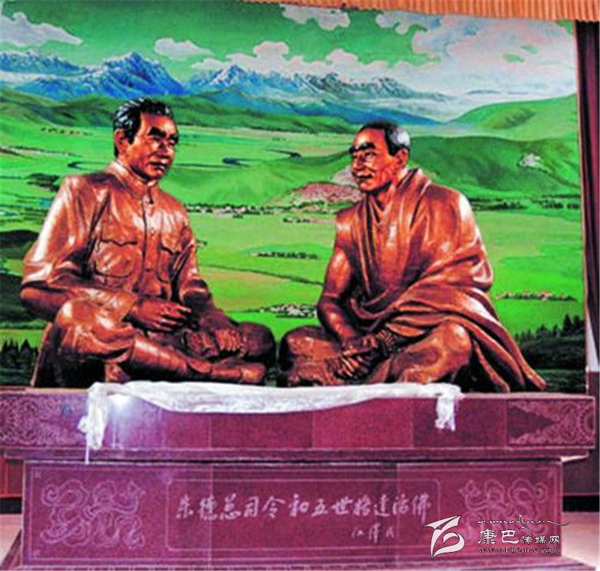 甘孜縣紅軍紀念館的朱德與格達活佛雕像。