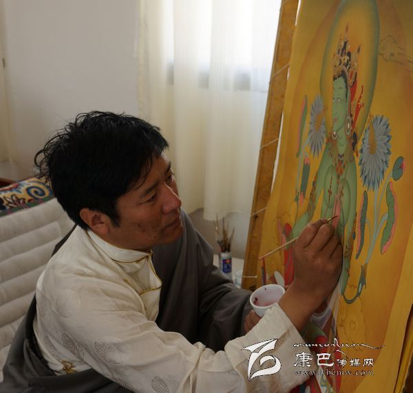 寶劍鋒從磨礪出,梅花香自苦寒來(lái)。歷經(jīng)十余年的打拼與磨礪,他結(jié)合當(dāng)今唐卡藝術(shù)的發(fā)展變化,融合各家之長(zhǎng),在唐卡創(chuàng)作中逐漸形成了自己的風(fēng)格,一種被稱為“多派”唐卡的新唐卡很快進(jìn)入了人們的視野。