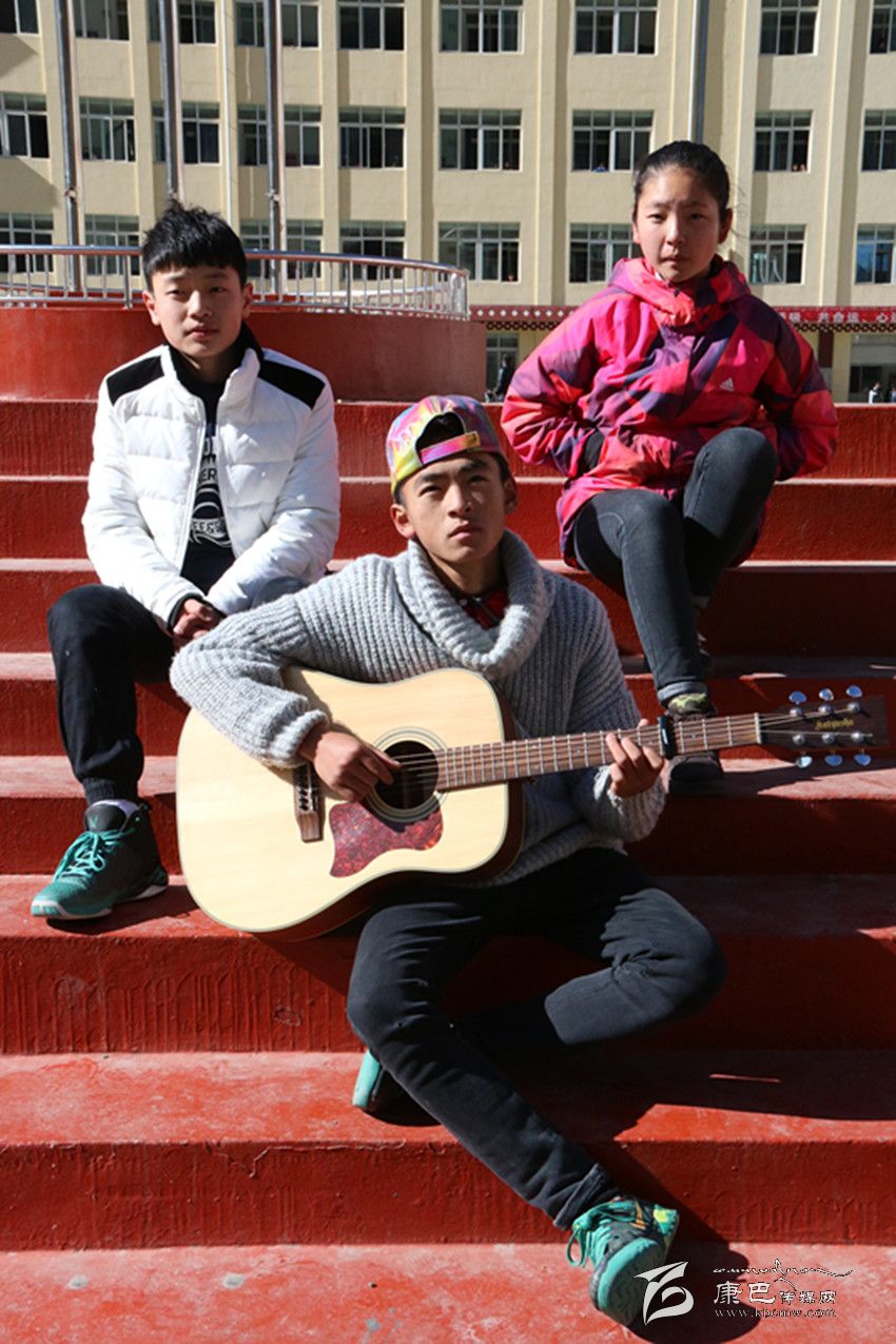 “白云下一座溜溜的城/聽著溜溜的歌聲/李家那溜溜的大姐喲/溜溜愛上藏家大哥喲/尋夢在溜溜的跑馬山/我推著金桶溜溜轉(zhuǎn)/折多河溜溜穿城過喲/頌經(jīng)聲溜溜的傳承喲/悠揚琴聲在溜溜小城/我溜溜等待著愛人/跑馬山龍打溜溜撒喲/心就在溜溜城中活……”最近一首名叫《溜溜》的歌曲刷爆了記者的朋友圈,不到一天的時間點擊率達到12000多,干凈的嗓音碰上吉他、貝斯等流行元素,給聽眾帶了一種不同的音樂享受?!读锪铩返脑~曲作者周麒(當(dāng)然他也是原唱之一)和主唱昂汪央金拉姆、周楠都是來自康定中學(xué)的學(xué)生,在冬日的午后,記者在康定中學(xué)的籃球場見到了這三位一臉天真的原創(chuàng)者。初見記者,他們還有一些靦腆、緊張,但是一談到音樂,他們立刻有了說不完的話。