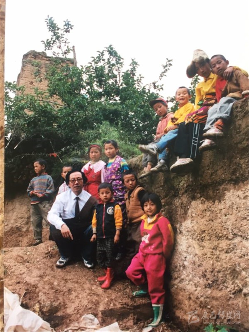 在基層采風時,阿金與兒童在一起。