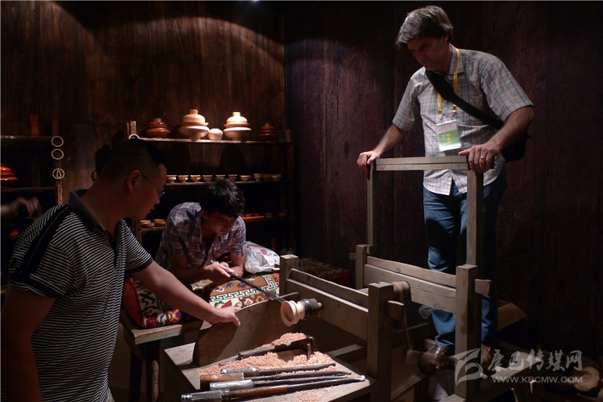 土耳其客人體驗得榮傳統(tǒng)木制手工藝。
