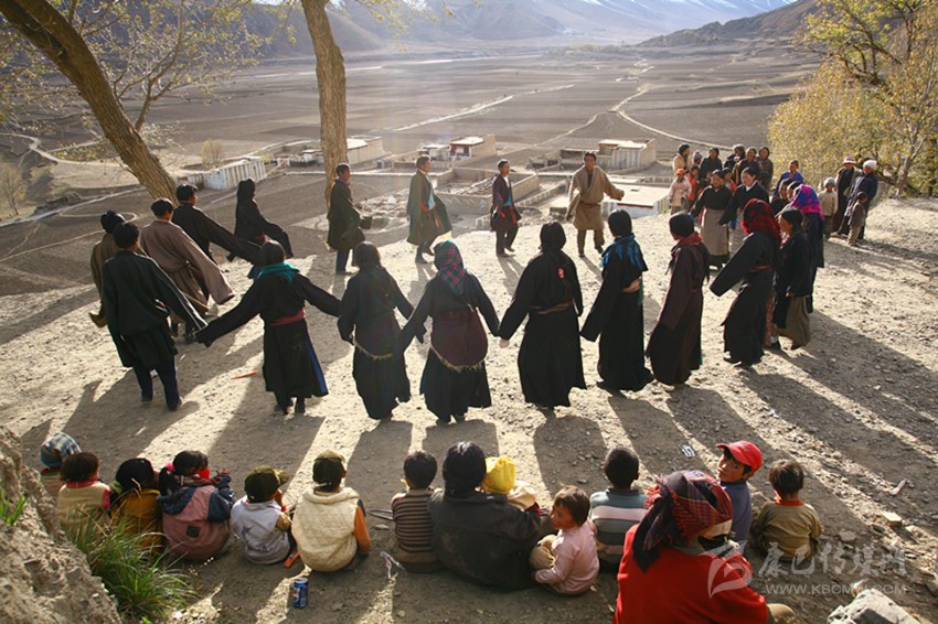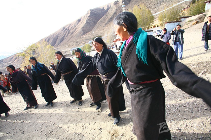 弦子又名為“協(xié)”,在甘孜縣境內(nèi)有孔薩協(xié)欽、仲薩協(xié)、格達協(xié)、郎扎協(xié)等,其中白利寺五世格達活佛創(chuàng)建于二十世紀三、四十年代的格達弦子尤為著名,跳此舞無時間規(guī)定。起初用此歌祭祀亡魂、超度靈魂、免荒災(zāi)。以后逐漸豐富其內(nèi)容而流傳于民間。表演時無伴奏樂器,起舞時,男女兩隊輪歌共舞,圍成圓圈,相對而立,男女舞者統(tǒng)一著樸素藏裝,男舞者抬頭,頭戴金氈帽, 身著“氆氌”衣,但不配戴腰刀;女舞者低頭,扎小辮子,身著“氆氌”衣,腳穿藏鞋,沿著弧線,先慢后快,邊歌邊舞,舞蹈的腳步動作矯健,帶有“夏卓”的風韻。格達活佛的詩歌,具有藏族文學的新內(nèi)容和新思想,每當節(jié)日人們就在優(yōu)美的旋律中盡情起舞,格達弦子的詞、曲均由格達活佛創(chuàng)作。