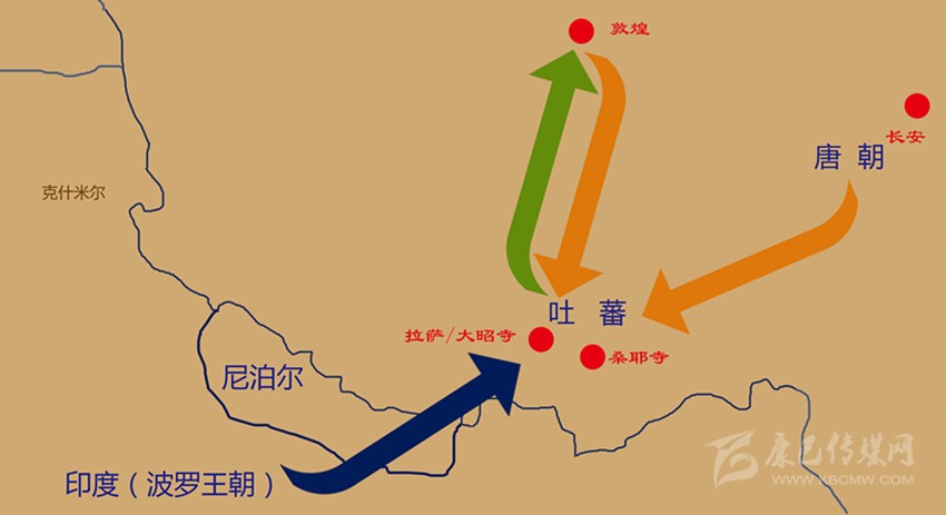 前弘期的佛教文化傳入示意圖。