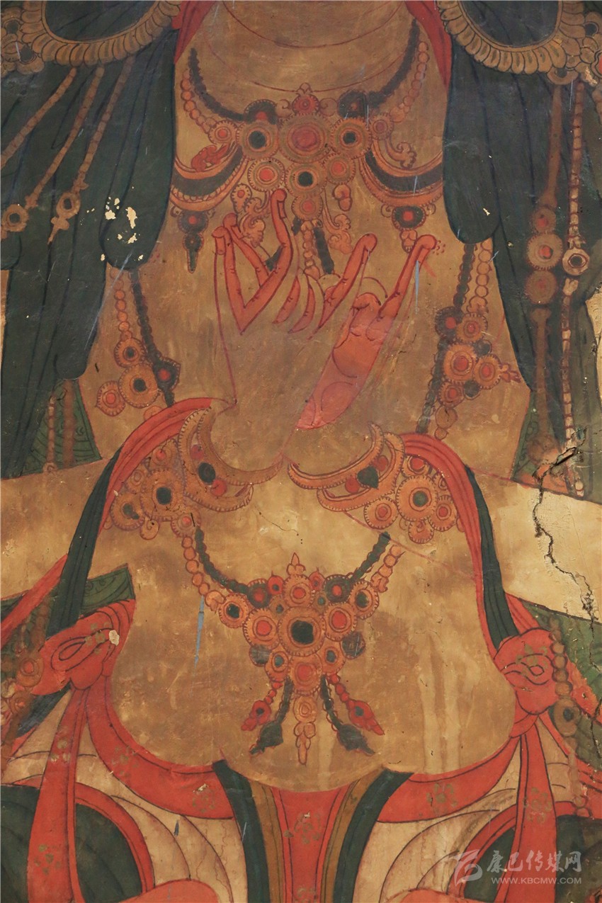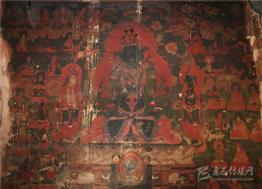 而吉祥天母殿內(nèi)的壁畫雖規(guī)模不及百柱大殿的壁畫大,但殿內(nèi)保存的壁畫歷史更悠久,畫風(fēng)更獨特,是一座取之不盡用之不竭的壁畫寶庫,是目前當(dāng)?shù)乇4娴谋诋嫯?dāng)中規(guī)模最大最古老的壁畫之一。