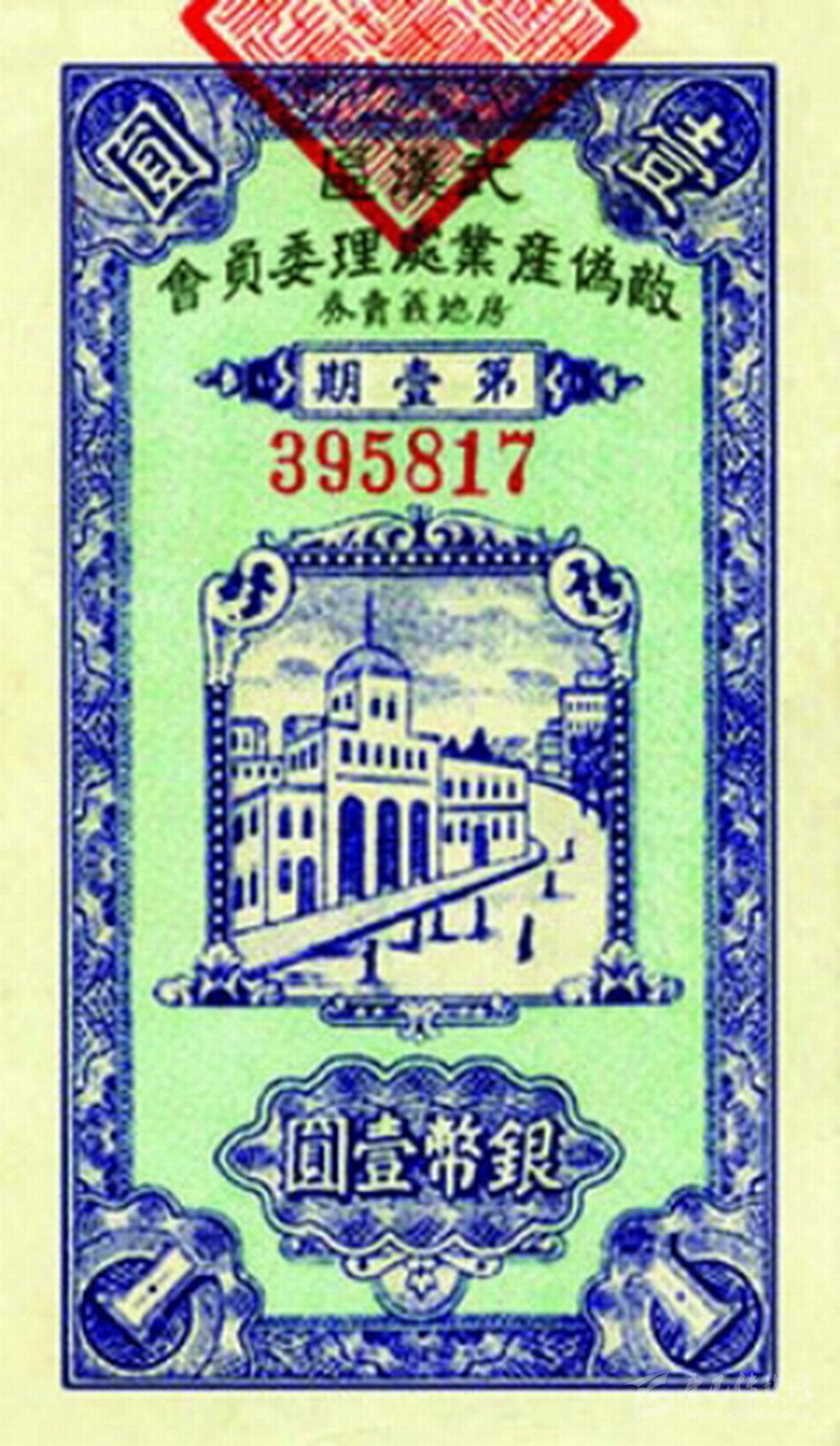 1949年3月,武漢市政府發(fā)行了100萬張彩票,面值都是“銀幣一元”,可以買一張,中獎(jiǎng)率是兩萬五千分之一,獎(jiǎng)品是位于漢口的別墅。推出彩票“房地義賣券”,以武漢區(qū)敵偽產(chǎn)業(yè)處理委員會(huì)名義發(fā)行,票幅高62毫米,闊106毫米,售價(jià)為銀幣壹元,計(jì)劃發(fā)行100萬枚,計(jì)有39幢房屋充作獎(jiǎng)品,定于5月10日在漢口當(dāng)眾搖彩。1949年,正是國民黨政權(quán)風(fēng)雨飄搖之時(shí),因此5月10日的搖彩日也就成了彩票發(fā)行組織者的逃命日,六天后武漢解放,那“房地獎(jiǎng)”未能兌現(xiàn)。