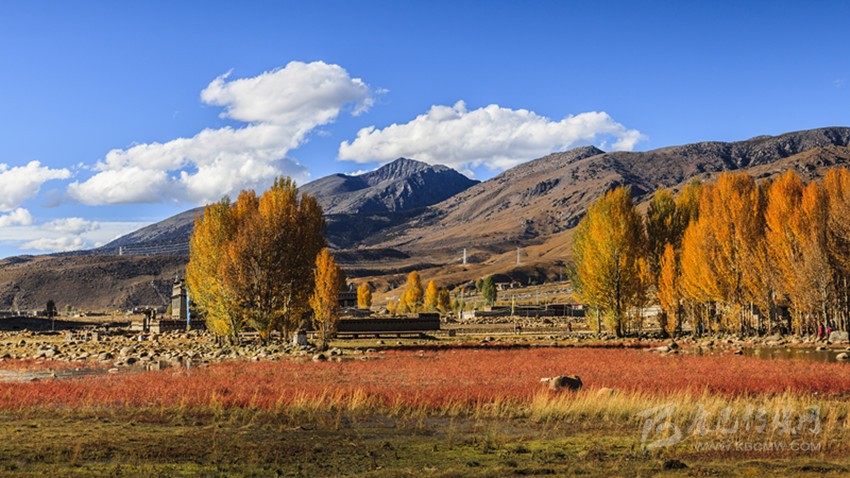 生活的美好在萬(wàn)畝格?;ê@?、在山溝溝里巨大的秋陽(yáng)灑落我周身的溫暖里、在公路兩旁的蓮花白緊實(shí)的菜心里,美好的日子是公路旁小木臺(tái)上擺滿的橢圓黃色,青黃的蘋(píng)果,一袋袋牦牛肉干、筍黃色南瓜里,美好在萬(wàn)萬(wàn)棵果樹(shù)、白楊樹(shù)、柳樹(shù)林間。美好是阿媽高原紅的臉蛋兒透出血紅色的笑臉。