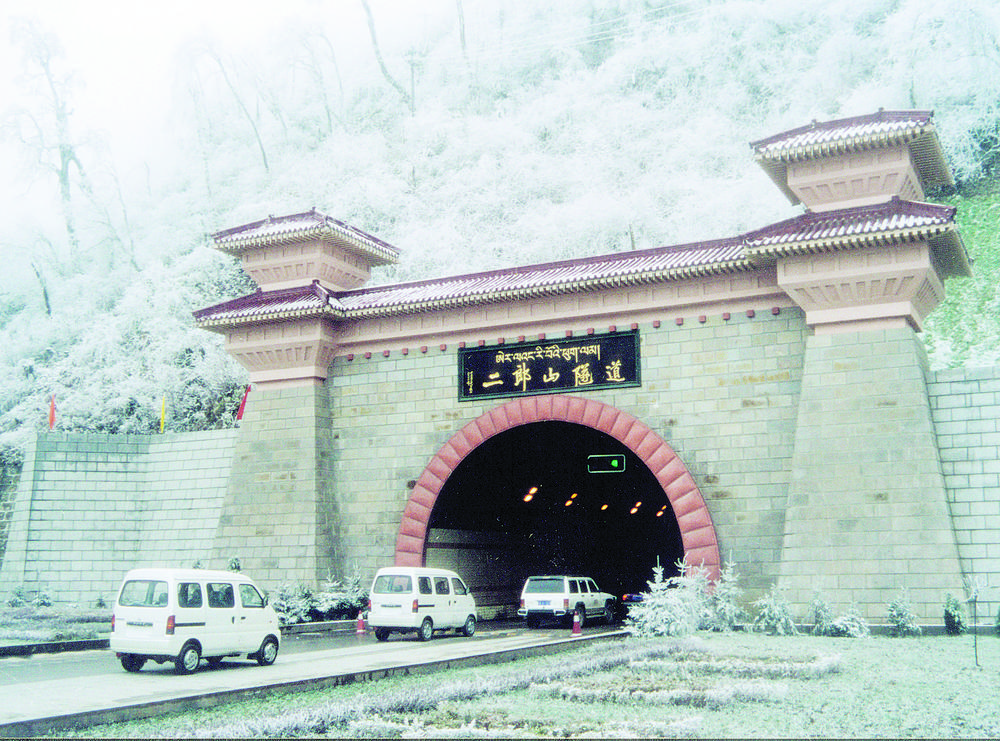 二郎山又誕生了一條隧道——高速公路新隧道,四川結(jié)束了從內(nèi)地到高原無(wú)高速公路的歷史。新隧道在川藏公路老隧道的高程上再降700米,完全避開(kāi)冰雪線(xiàn),實(shí)現(xiàn)了通行的快捷與高效。全長(zhǎng)13000多米的新隧道穿越十三條地震斷裂帶,行車(chē)只需一刻鐘便可經(jīng)過(guò)。隧道內(nèi)不僅有流線(xiàn)型的路標(biāo),還有燈光的天幕布景,一幅幅國(guó)旗、星空、藍(lán)天等不斷變幻的圖案讓人耳目一新。