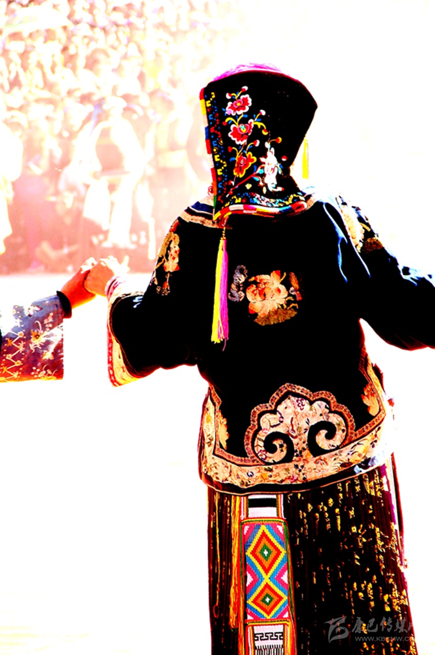 這些服飾雖歷經(jīng)歲月的滄桑,依然被完整的保存下來。如今,在上下宅龍村寨里,保存完整的有五十余套。每一年,村寨里舉辦活動時,村寨里的婦女們從木箱里取出這些服飾,小心翼翼地穿在身上,載歌載舞。在她們舞動的時候,仿佛被這些服飾帶入幾百年前的時光里,時空在這一瞬間已完全改變。這時候,服飾上艷麗的圖案將舞者們襯托得更加美麗動人,無怪乎《章谷屯志略》中有“逢慶典時著蟒衣文繡亦頗美觀”這樣的記載。