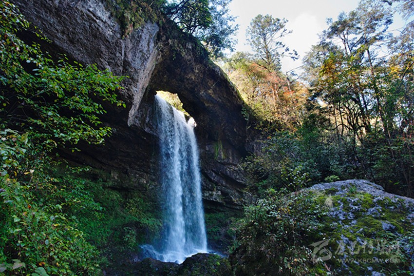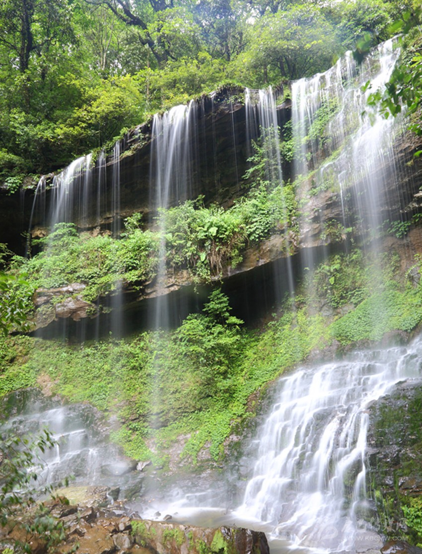 我的腳步?jīng)]有停留,再轉(zhuǎn)過一個(gè)彎道,瀑布就不見了,像我樸素的心歷經(jīng)了一場美妙的幻境一樣忽然。我聽到前方有更大的水聲跌落,仰頭就見一道更高的瀑布從高山峭壁之間,凌空垂下,水花飛濺的聲音響徹山谷。腳下的石徑像有生命似的蜿蜒穿入了瀑布之中,我登上去,站在其間看著瀑布從眼前落下,大口呼吸,心胸豁然開朗,這是瀑布給我的啟迪啊。