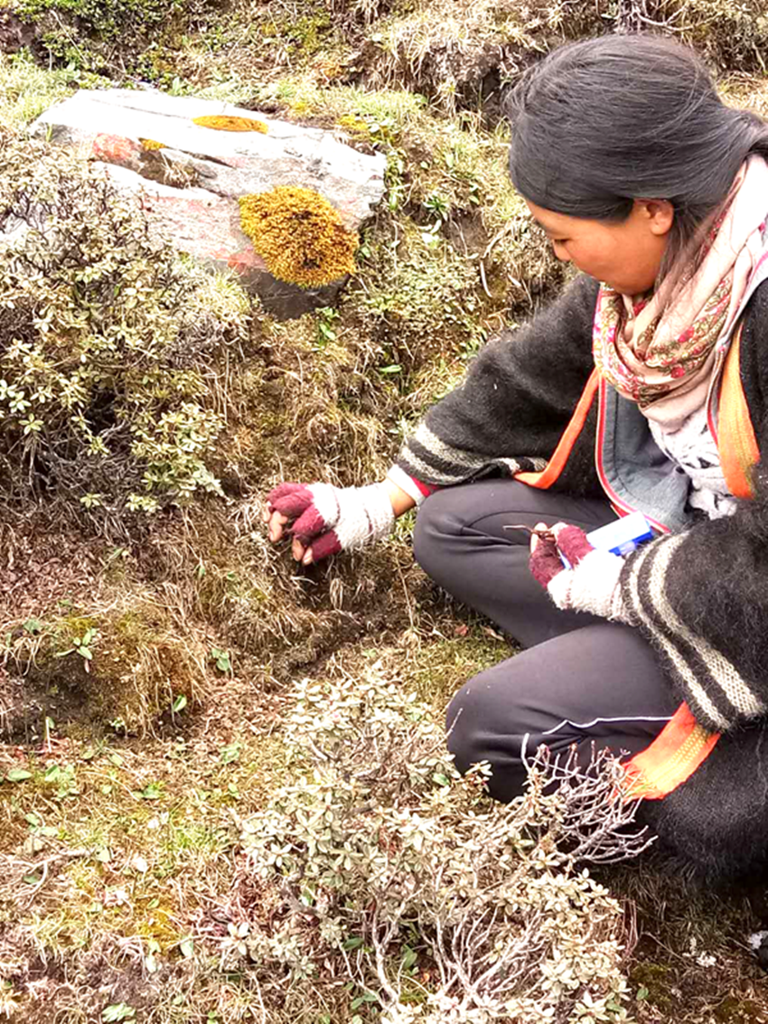 銀珠做完這個(gè)莊重的祈禱儀式,才從包里取出一個(gè)裝糖豆的鐵盒子,小心地將它放進(jìn)盒子蓋上,揣進(jìn)衣兜里。她重新埋好挖出的土,接著爬向了一叢叢小杜鵑,它們散發(fā)著淡淡的苦澀味,使她放慢了爬行的速度,細(xì)細(xì)尋找著干草木葉中的那些獨(dú)特菌類。她的手和膝蓋被雪水浸濕了,也不覺寒冷,自己像是其中的一種生靈。不一會(huì)兒,她就看到了好幾只蟲草的尾巴露在草皮上,它們的樣子分明是在歡喜奔跑,見到有人靠近倏忽間就停止下來(lái)了,令她忍不住發(fā)出了噗嗤一聲笑。南吉聽到這聲音,抬頭朝銀珠的方向看去,只見滿山的花草都在微風(fēng)中輕輕顫動(dòng)。南吉看到銀珠許久沒(méi)有挪動(dòng),便知道她找到了自己的纖草堂子……