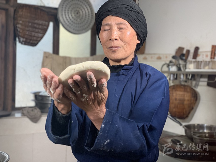 陳群芳制作火燒子饃饃。