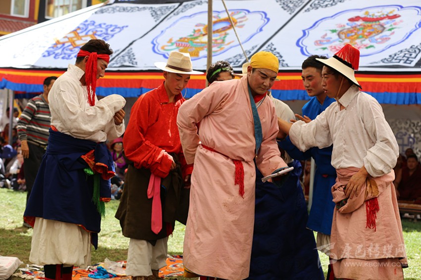 不過(guò)依照習(xí)慣,大家還是要募捐。誰(shuí)家募捐了多少,藏戲團(tuán)會(huì)在“央勒節(jié)”的最后一天,即藏戲演出的尾聲“扎西交”上道謝?!霸鹘弧庇袔讓右饬x,祝賀本次“央勒節(jié)”功德圓滿,祈愿來(lái)年五谷豐登幸福安康,感謝上天賜予大地的恩惠。演員們向供奉在大帳篷中央的祖師爺唐東杰布莊重磕頭,把撒糌灑向天空,謝幕,“央勒節(jié)”便在熱烈的氣氛中結(jié)束了。每當(dāng)聽(tīng)到話筒里喊出:“XX顧伙(顧伙:巴塘方言藏語(yǔ),即搭帳篷的某一家),捐款XX元,道謝了!”時(shí),大家都會(huì)生出不舍與惆悵之感,撤帳篷回家,日子又恢復(fù)到平常的瑣碎里了。