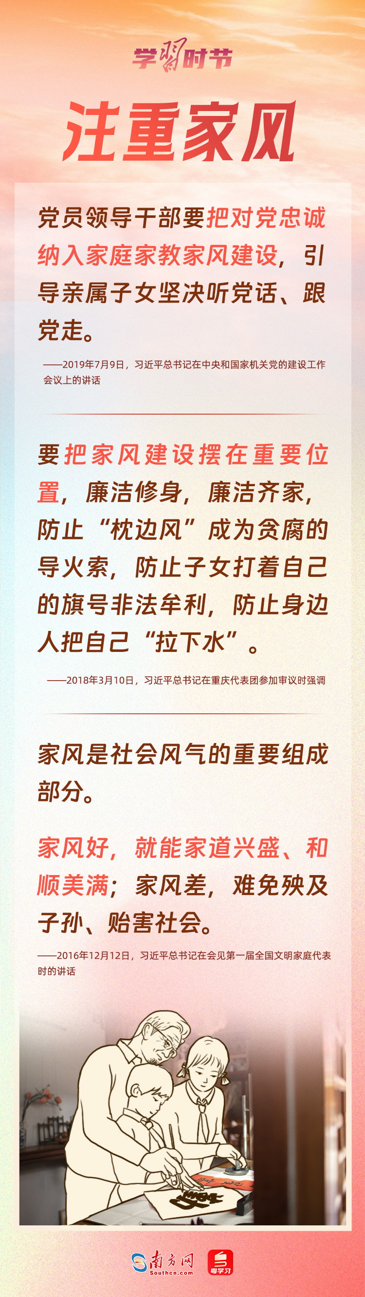 5月15日是國際家庭日。家庭是社會的細胞,是國家發(fā)展、民族進步、社會和諧的重要基點。習近平總書記心中始終牽掛著千家萬戶,高度重視家庭、家教和家風建設,強調(diào)不論時代發(fā)生多大變化,不論生活格局發(fā)生多大變化,我們都要重視家庭建設,注重家庭、注重家教、注重家風。家庭和睦、家教良好、家風端正,子女才能健康成長,社會才能健康發(fā)展。