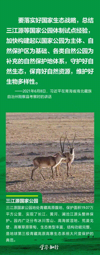 “生物多樣性使地球充滿生機,也是人類生存和發(fā)展的基礎(chǔ)?!蓖七M以國家公園為主體的自然保護地體系建設(shè),是習(xí)近平總書記作出的重要部署。三江源、大熊貓、東北虎豹、海南熱帶雨林、武夷山等首批國家公園正式設(shè)立以來,生態(tài)功能持續(xù)向好,對保護生物多樣性、推進人與自然和諧共生的現(xiàn)代化具有重要意義。