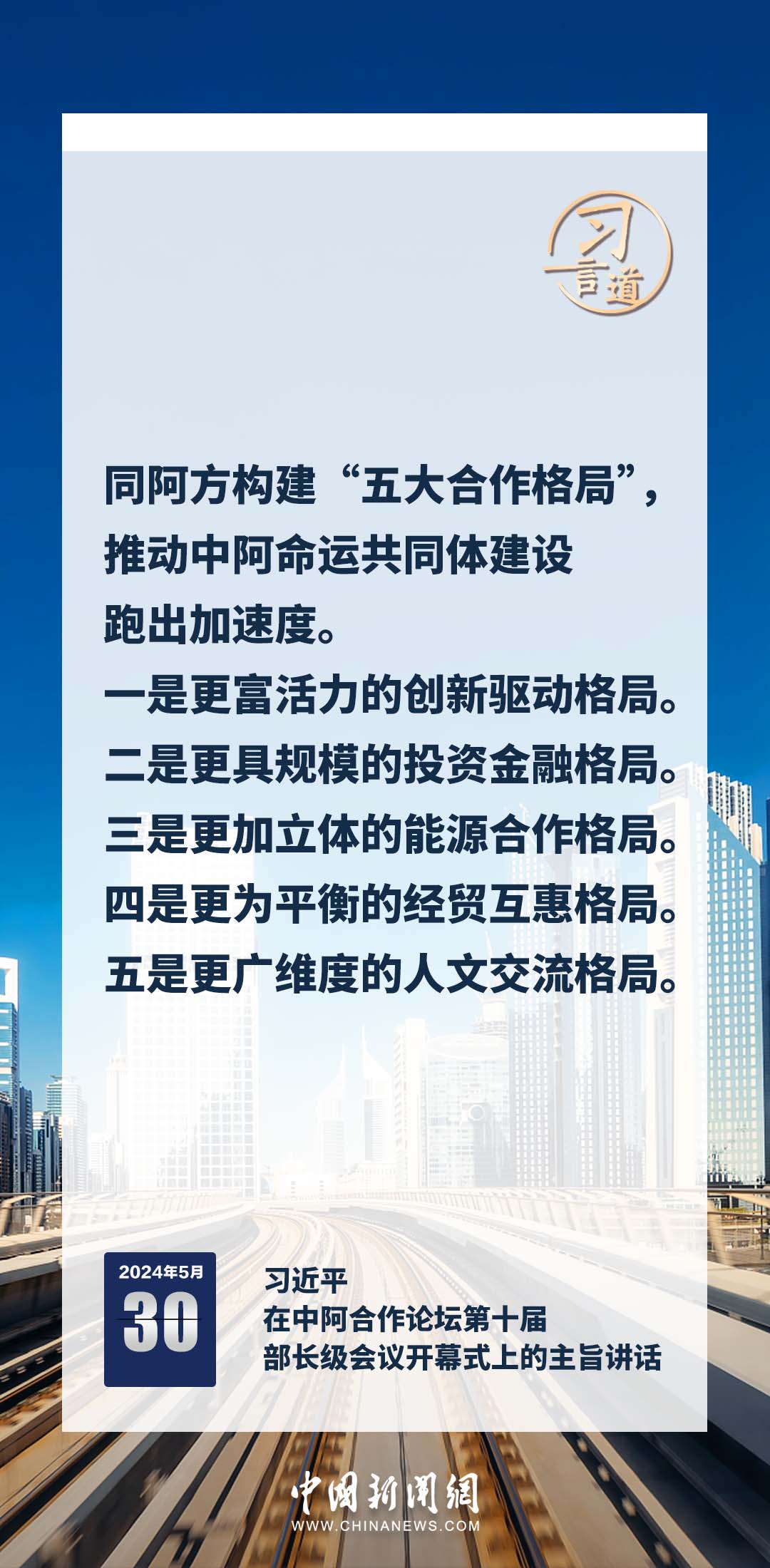 5月30日上午,國家主席習近平在北京釣魚臺國賓館出席中阿合作論壇第十屆部長級會議開幕式并發(fā)表主旨講話。習近平指出——