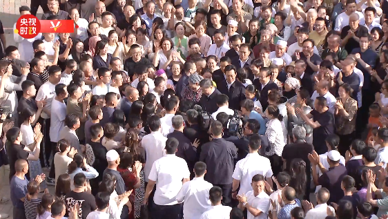 ??6月19日傍晚時分,寧夏銀川市金鳳區(qū)長城花園社區(qū)廣場,習近平總書記在這里考察即將結(jié)束時,居民們依依不舍,紛紛涌上前去,圍繞著總書記鼓掌歡呼,爭相與總書記握手。