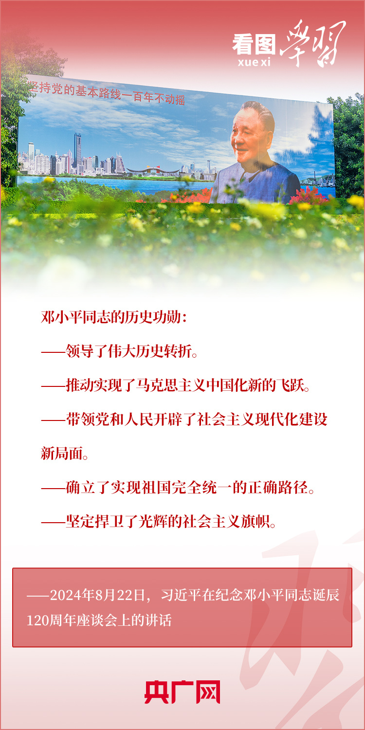 8月22日,習(xí)近平總書記在紀(jì)念鄧小平同志誕辰120周年座談會(huì)上發(fā)表重要講話指出,鄧小平同志的歷史功勛是全方位的、開創(chuàng)性的,對(duì)中國和世界的影響是深刻的、長(zhǎng)遠(yuǎn)的??倳洀?qiáng)調(diào),對(duì)鄧小平同志最好的紀(jì)念,就是把他開創(chuàng)的中國特色社會(huì)主義事業(yè)繼續(xù)推向前進(jìn)。我們要緊緊圍繞以中國式現(xiàn)代化全面推進(jìn)強(qiáng)國建設(shè)、民族復(fù)興偉業(yè)這個(gè)中心任務(wù),繼往開來,奮發(fā)進(jìn)取。一起來學(xué)習(xí)!
