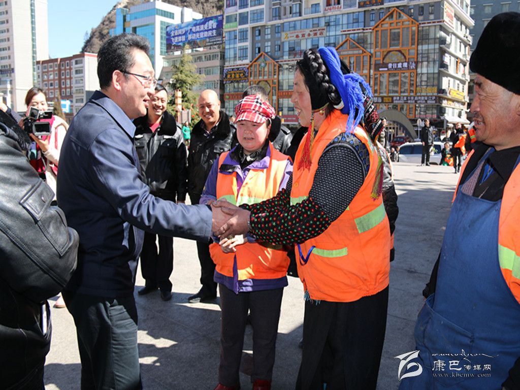 本網(wǎng)訊(記者 秦松 文/圖) 在春節(jié)和藏歷新年即將來臨之際,情歌故鄉(xiāng)康定城艷陽高照,大街小巷處處洋溢著節(jié)日的氣氛。2月17日,州委副書記、州政府州長益西達瓦帶著新春的祝??赐繂柫丝刀h市政管理人員和環(huán)衛(wèi)工人、新華書店職工,并深入到康定縣郭達橋農(nóng)貿(mào)市場調(diào)研商品供銷情況。