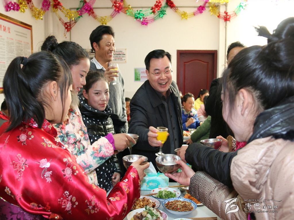“現(xiàn)在我們共同舉杯,祝愿我們的老師們家庭幸福,祝愿孩子們學(xué)習(xí)進(jìn)步,健康成長(zhǎng),新年有新成就,扎西德勒。干杯!”胡昌升以茶代酒,祝福大家春節(jié)愉快、萬(wàn)事如意。