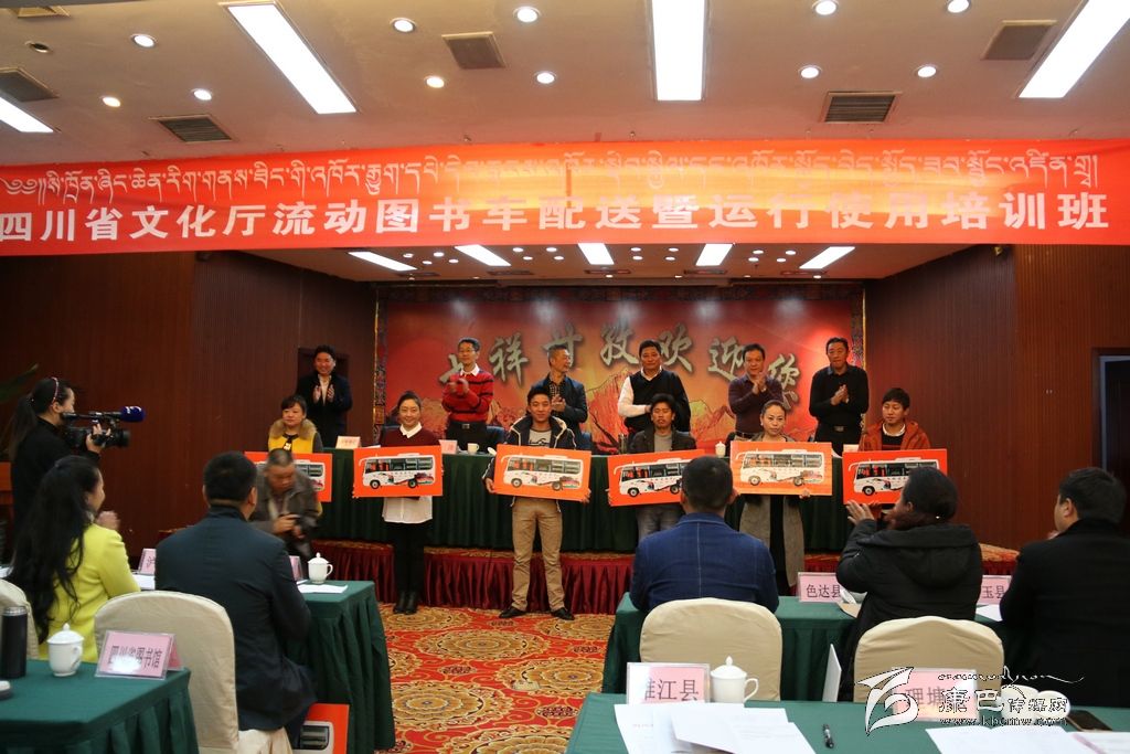本網(wǎng)訊(記者 宋志勇文/圖)10月13日,四川省文化廳流動圖書車配送暨運行使用培訓會在康定市舉行,共為我州配送流動圖書服務車18輛。省文化廳副廳長向華全,州委常委、宣傳部長相洛,省文化廳財務處處長潘沛等出席并為18個縣(市)發(fā)放了車鑰匙。