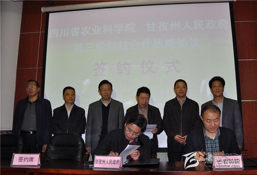會上,州委常委、農(nóng)工委主任楊凱作“院州”合經(jīng)驗交流,省農(nóng)科院院長李躍建與州政府副州長杜德清簽署“四川省農(nóng)業(yè)科學(xué)院甘孜州人民政府第三輪科技合作戰(zhàn)略協(xié)議”。