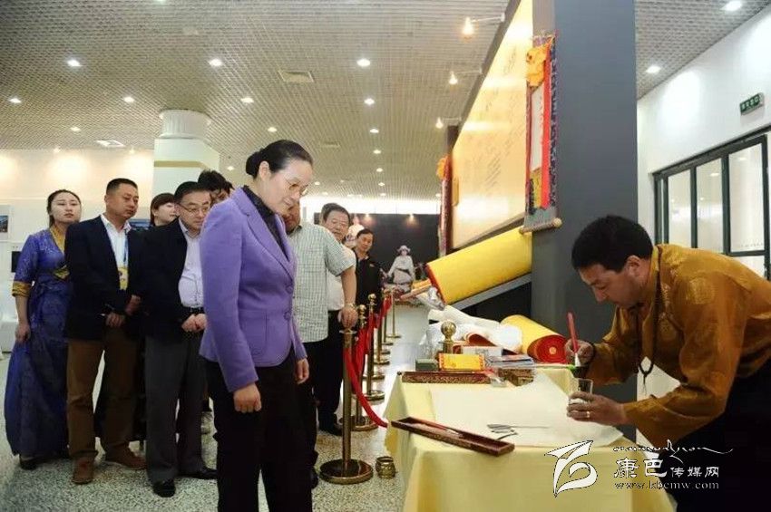 在展覽中心,趙雯在州政府副州長(zhǎng)葛寧等的陪同下,觀(guān)看了甘孜旅游宣傳片,參觀(guān)了甘孜旅游圖片展、藏傳佛教宮廷精品文物展、“藏藝通”旅游商品展和藏文書(shū)法展,仔細(xì)聽(tīng)取講解介紹,對(duì)甘孜州舉辦此次活動(dòng)給予了充分肯定。趙雯還興致勃勃地觀(guān)看了四川省級(jí)藏文書(shū)法傳承人、著名的藏文書(shū)法家巴松鄧珠現(xiàn)場(chǎng)藏文書(shū)法表演,品嘗了甘孜州康定藍(lán)逸高原食品有限公司的高原特色產(chǎn)品。